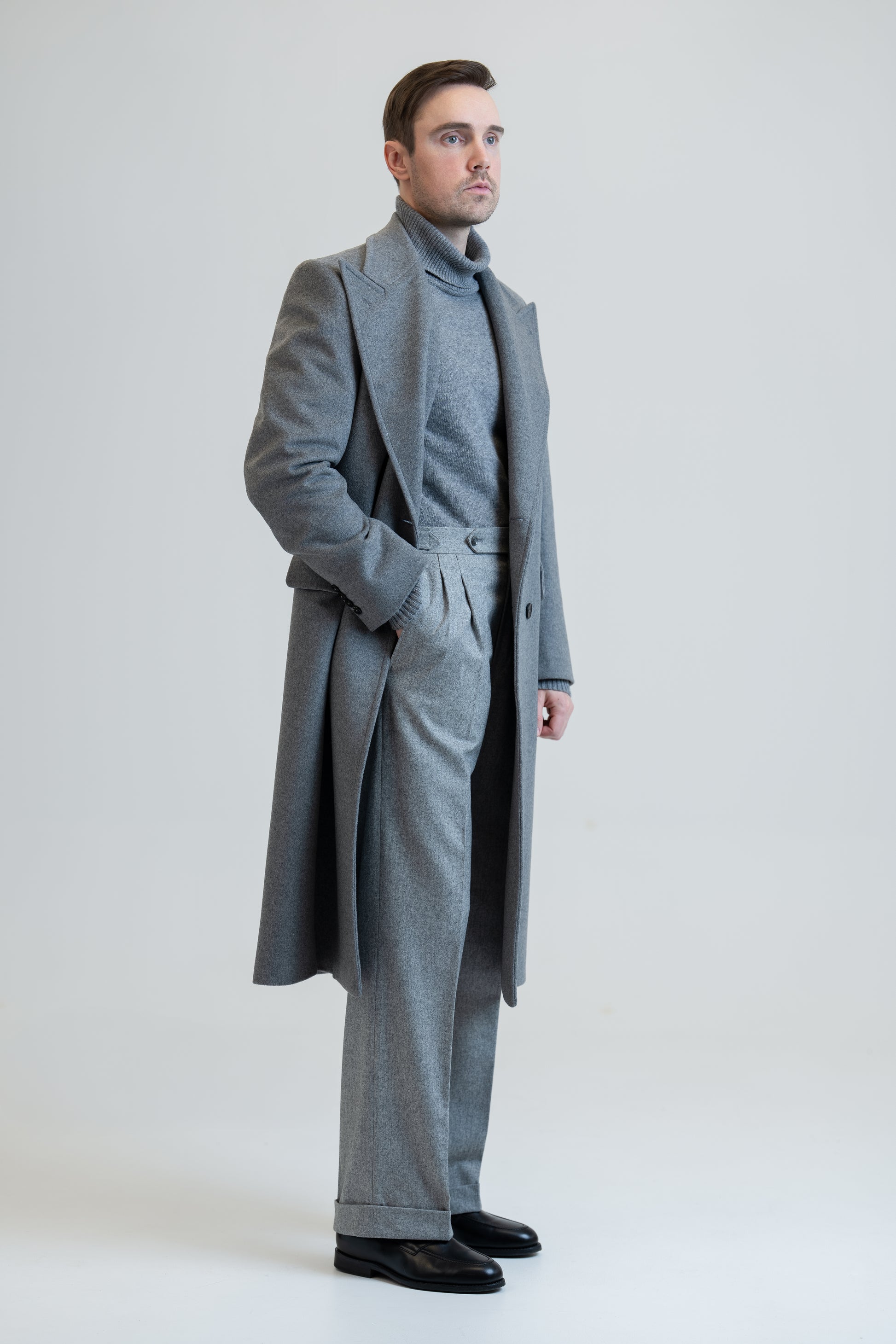Long Wool & Cashmere Grey Leonardo Coat